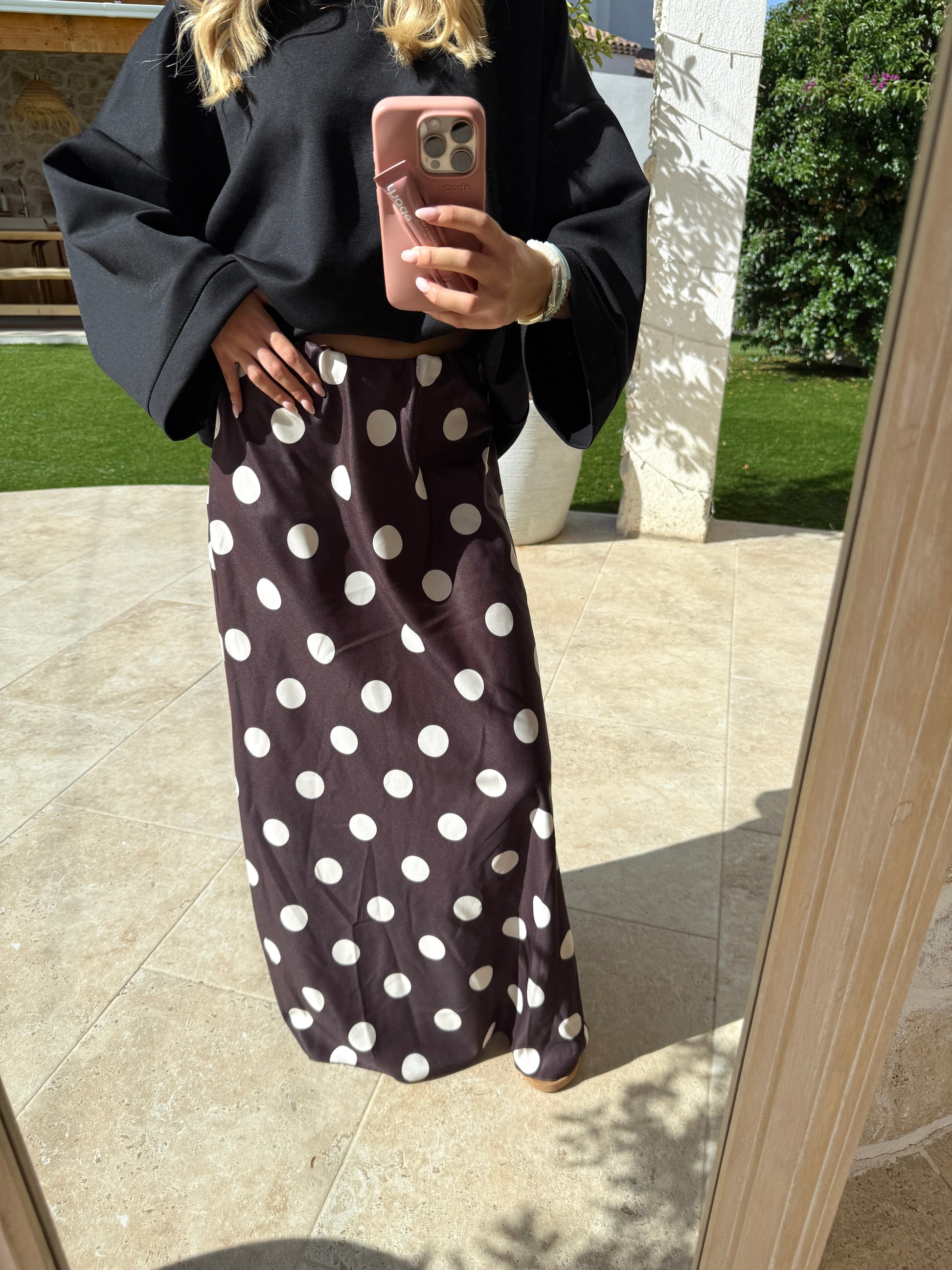 Jupe à pois marron